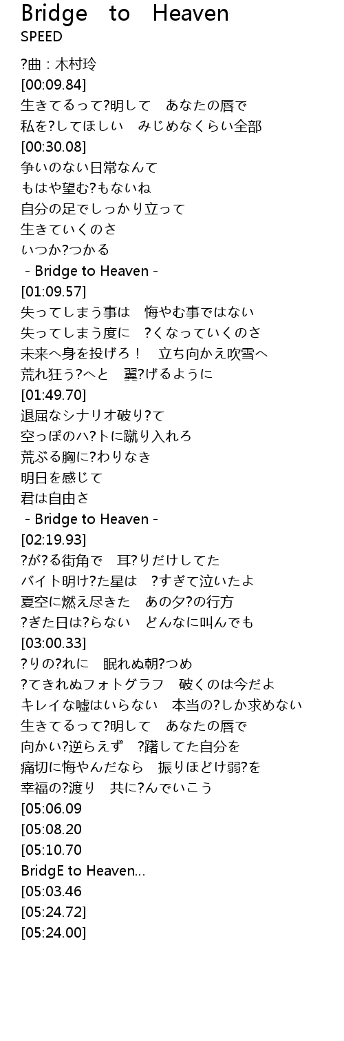 | [05:13.13][05:03.46][04:54.07] | Bridge to Heaven |