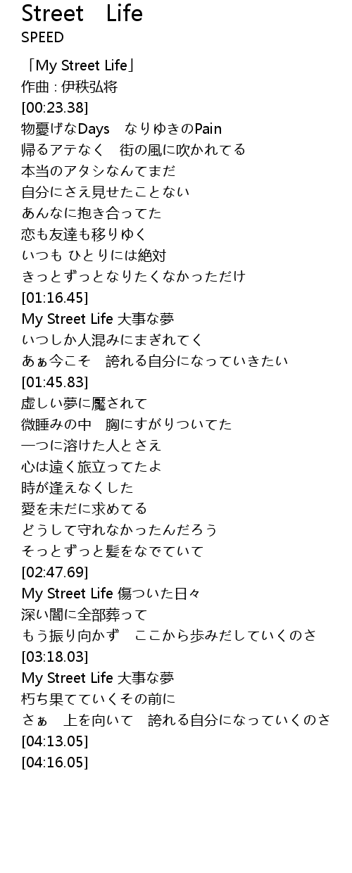 | [02:50.59] | My Street Life 傷ついた日々 |