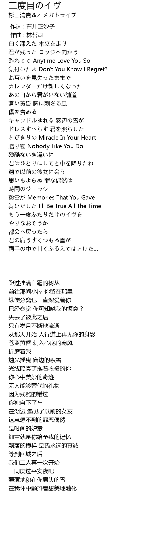 | [03:53.704] | もう一度ふたりだけのイヴを |