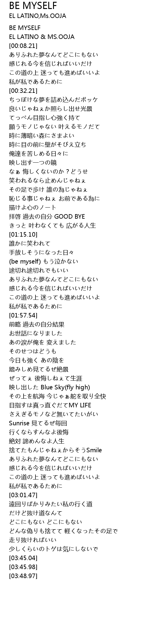 | [00:00.11] | BE MYSELF |