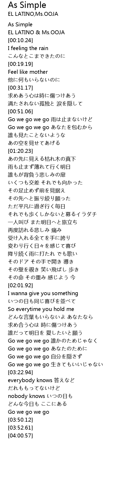 | [00:00.19] | As Simple |
