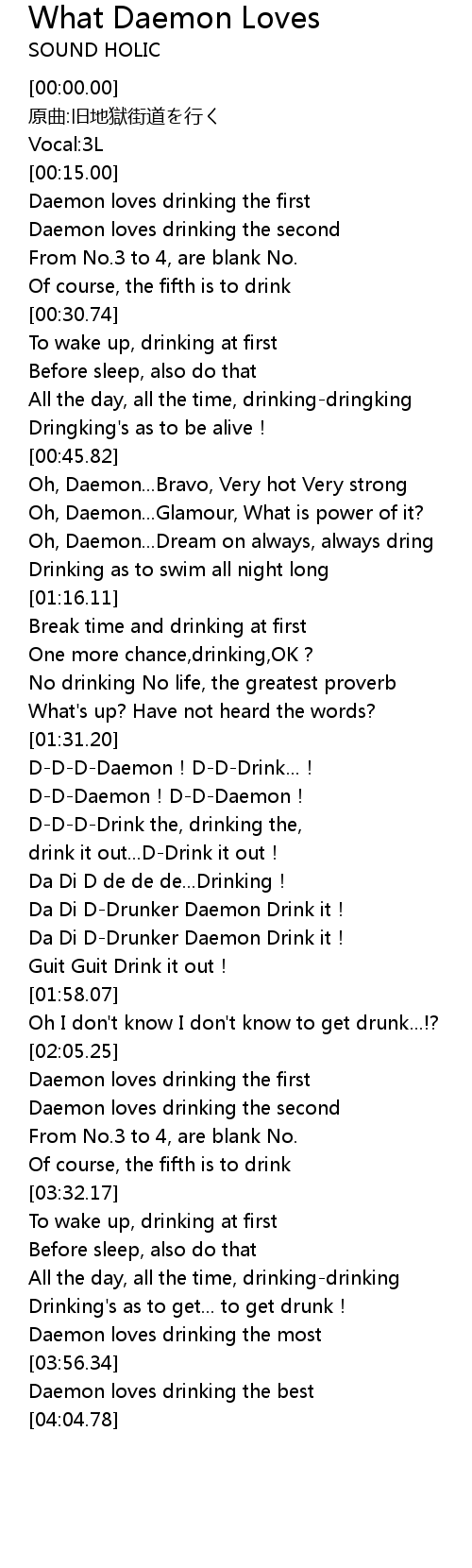 | [01:52.93] | Da Di D-Drunker Daemon Drink it! |