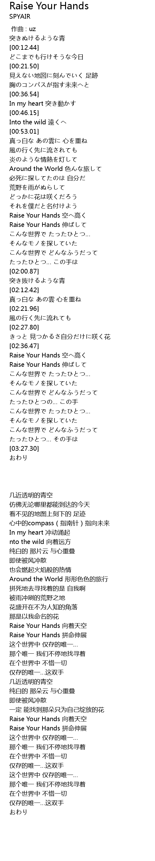 | [02:41.65] | Raise Your Hands kōng gāo |