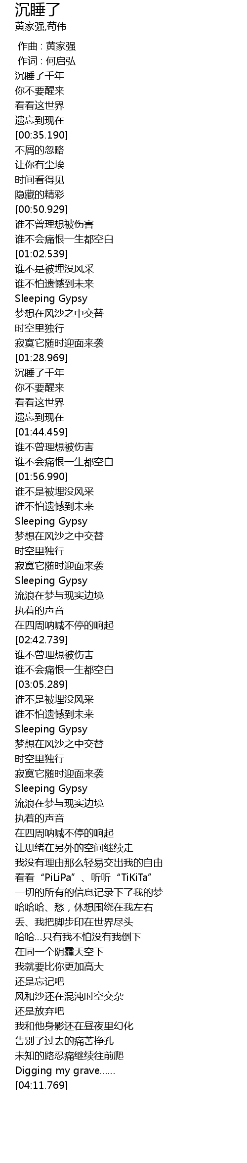 | [01:34.690] | 沉睡了千年 |