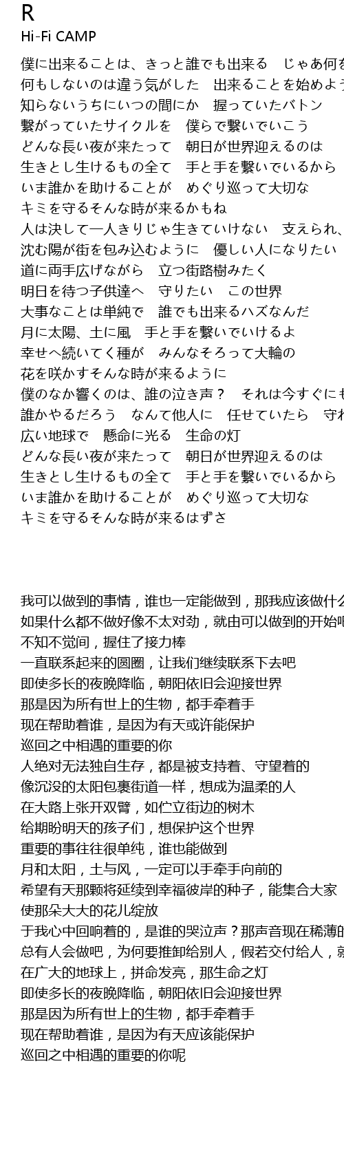 | [00:41.70] | 繋がっていたサイクルを 僕らで繋いでいこう |