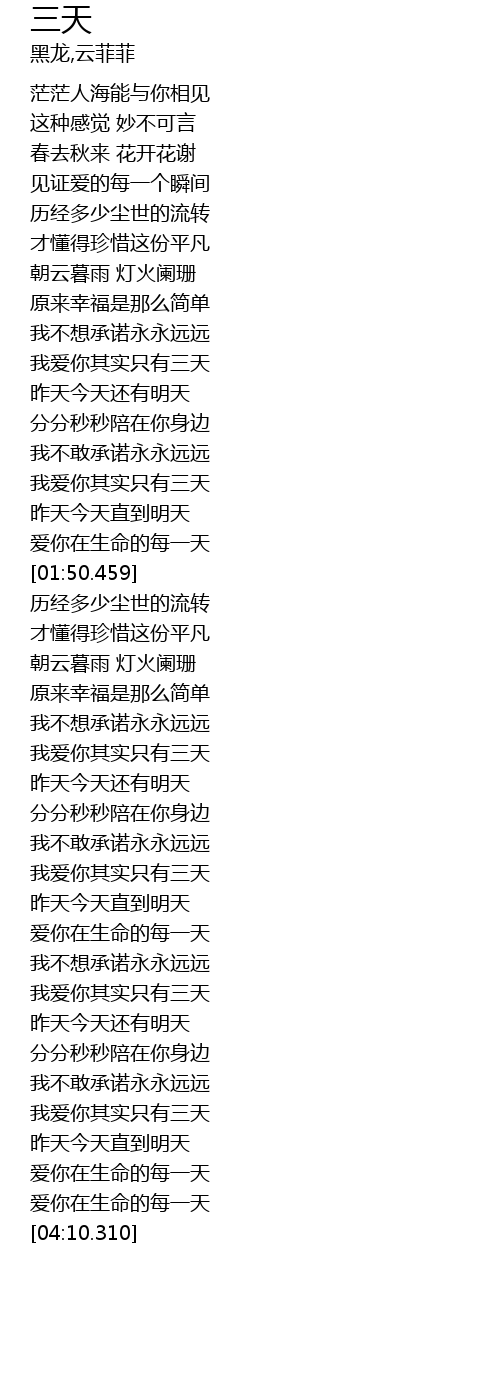 | [03:24.790] | wo ai ni qi shi zhi you san tian |