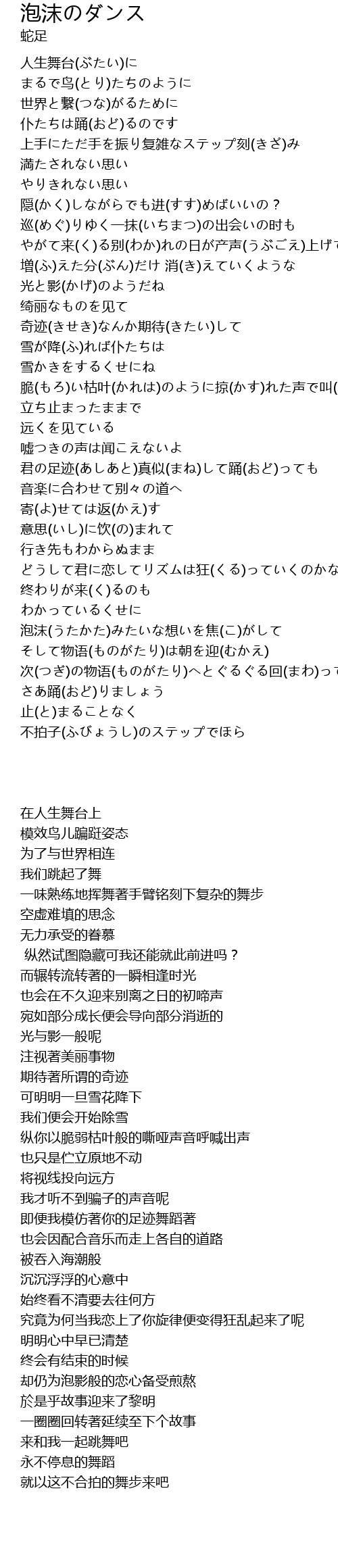 | [00:53.49] | 上手にただ手を振り复雑なステップ刻(きざ)み |