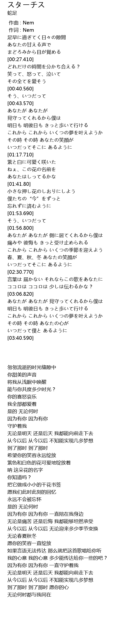 | [02:53.920] | 言葉は 届かない それならこの歌をあなたに |