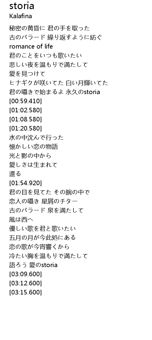 | [00:45.970] | 君の囁きで始まるよ 永久のstoria |