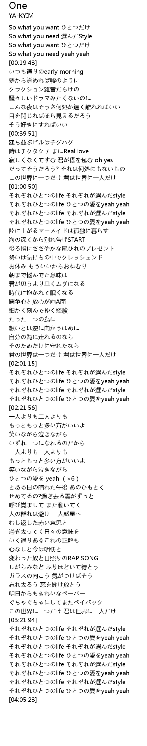 | [02:01.49] | それぞれひとつのlife それぞれが選んだstyle |