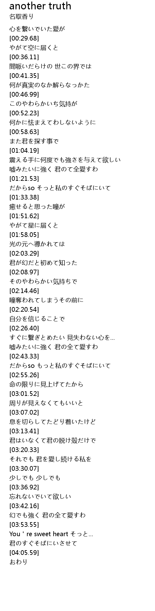 | [03:56.61] | You're sweet heart そっと... |