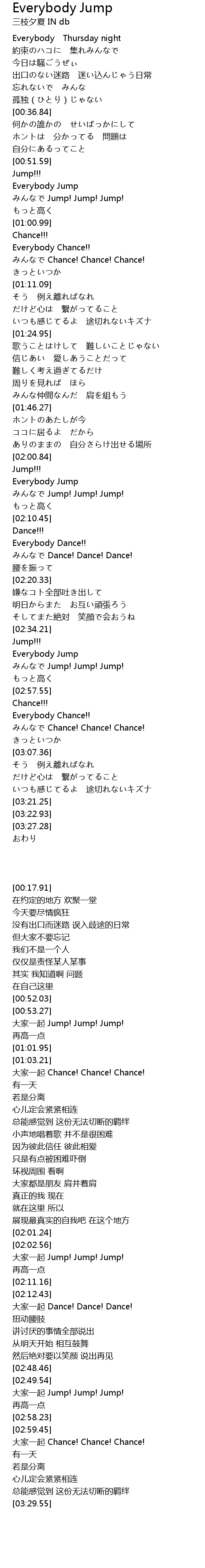 | [02:51.98] | みんなで Jump! Jump! Jump! |