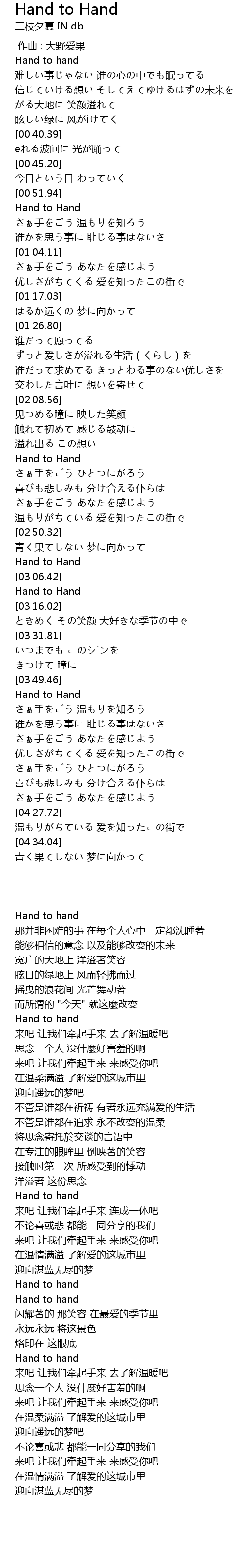 | [04:03.95] | さぁ手をごう あなたを感じよう |