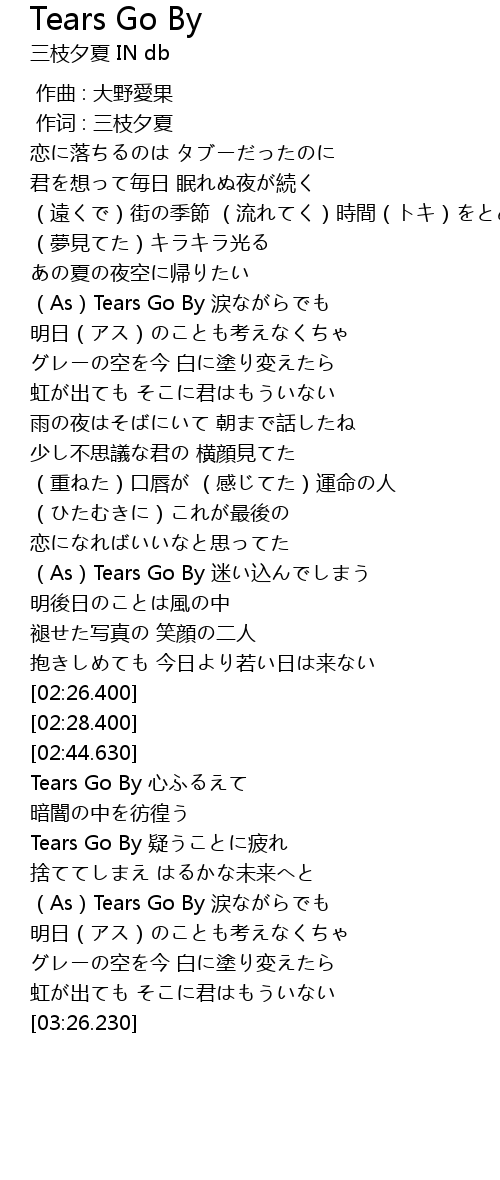| [02:04.460] | (As)Tears Go By 迷い込んでしまう |