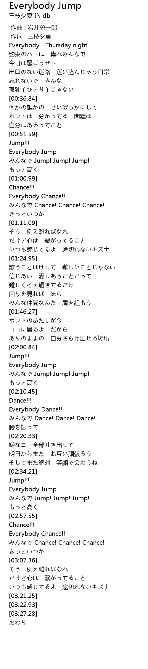 | [02:51.98] | みんなで Jump! Jump! Jump! |
