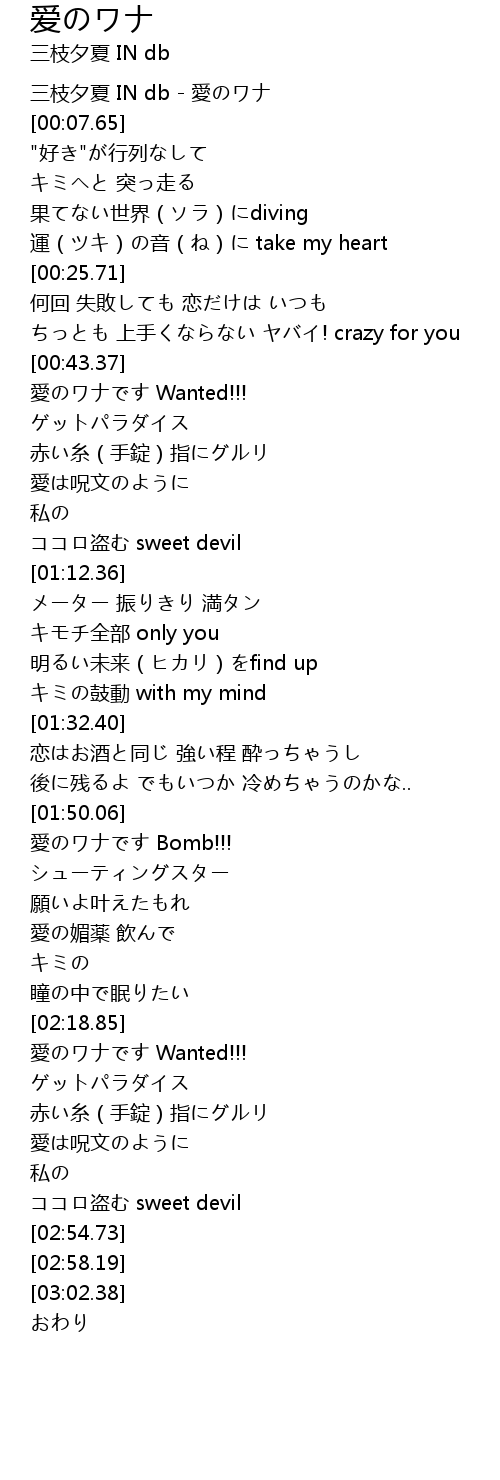 | [00:00.00] | 三枝夕夏 IN db - 愛のワナ |