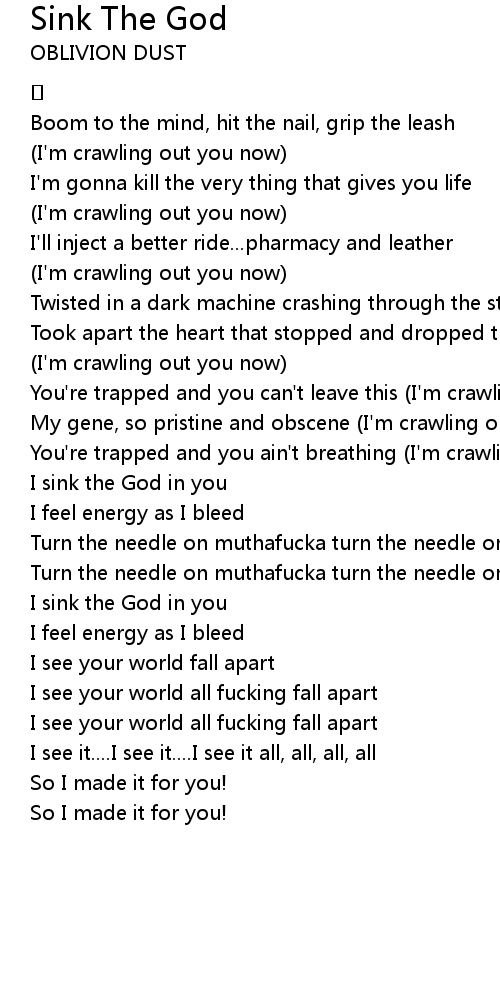 | You' re trapped and you ain' t breathing I' m crawling out you now | |