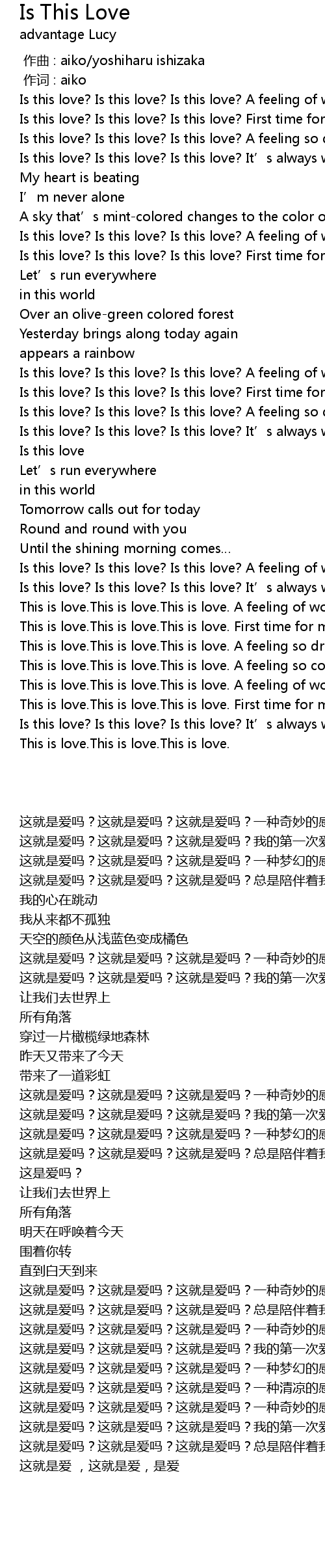 | [00:00.490] | Is this love? Is this love? Is this love? A feeling of wonder |