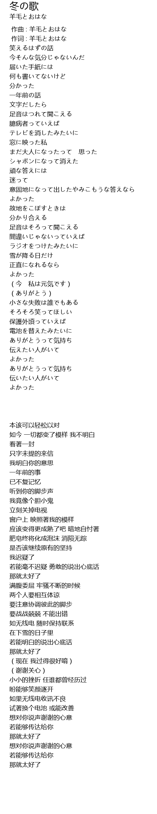作词 : 羊毛とおはな |