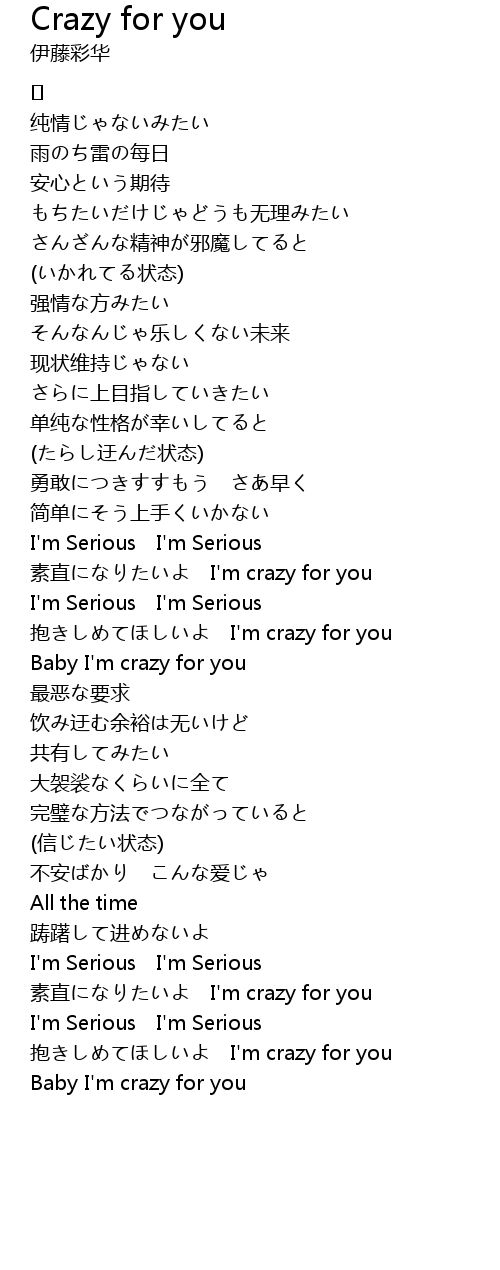 | 抱きしめてほしいよ I'm crazy for you | |