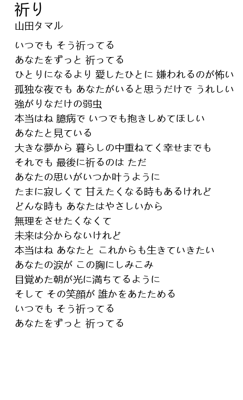| [00:11.40] | あなたをずっと 祈ってる |