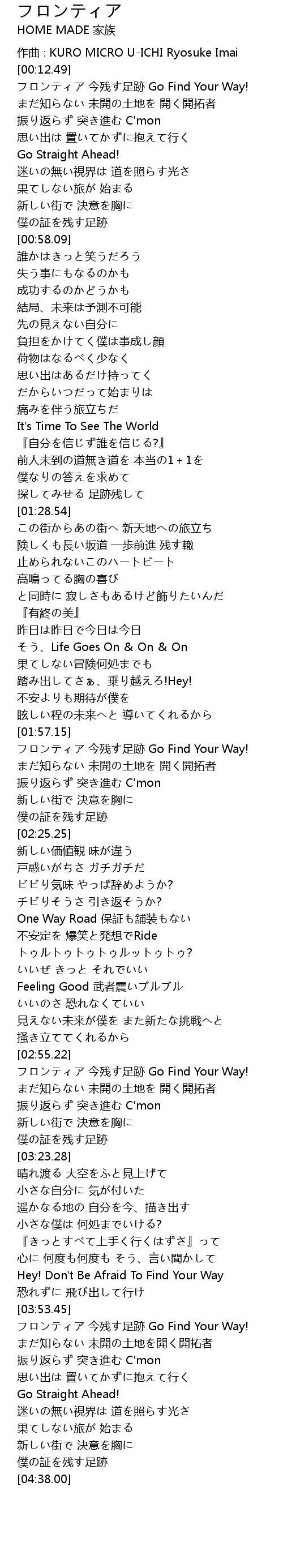 | [02:55.94] | フロンティア 今残す足跡 Go Find Your Way! |