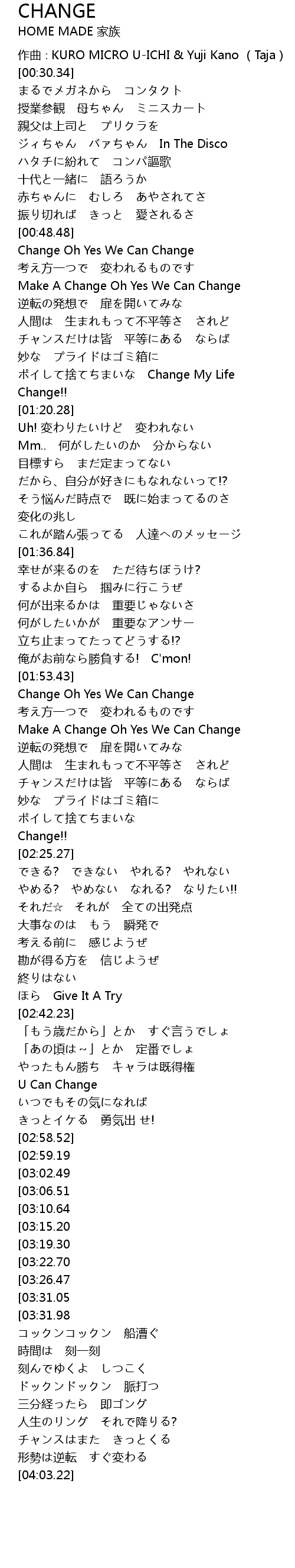 | [04:35.75][03:31.05] | Change!! |