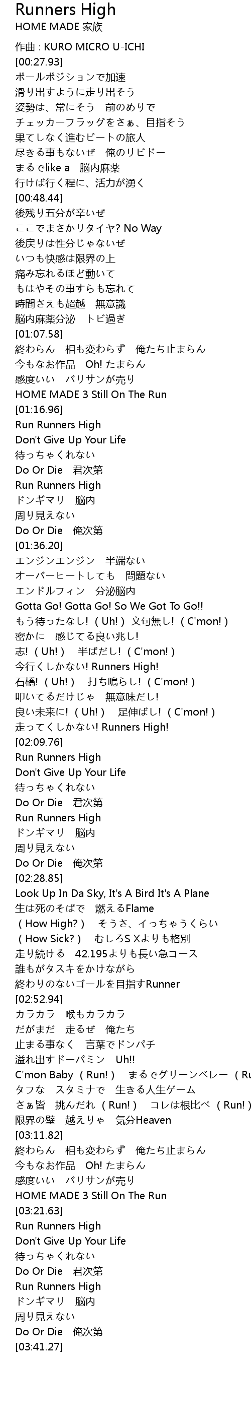 | [02:07.69] | 走ってくしかない! Runners High! |