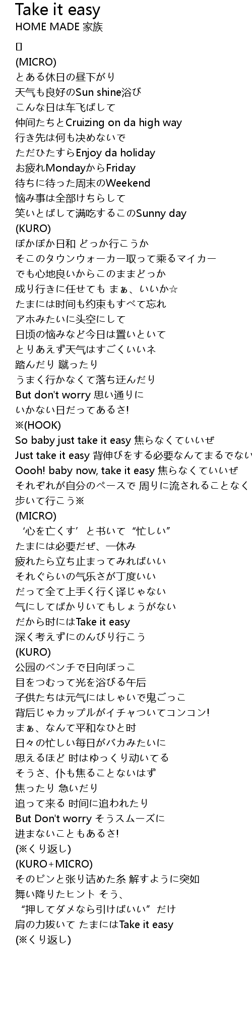 | Oooh! baby now, take it easy 焦らなくていいぜ | |