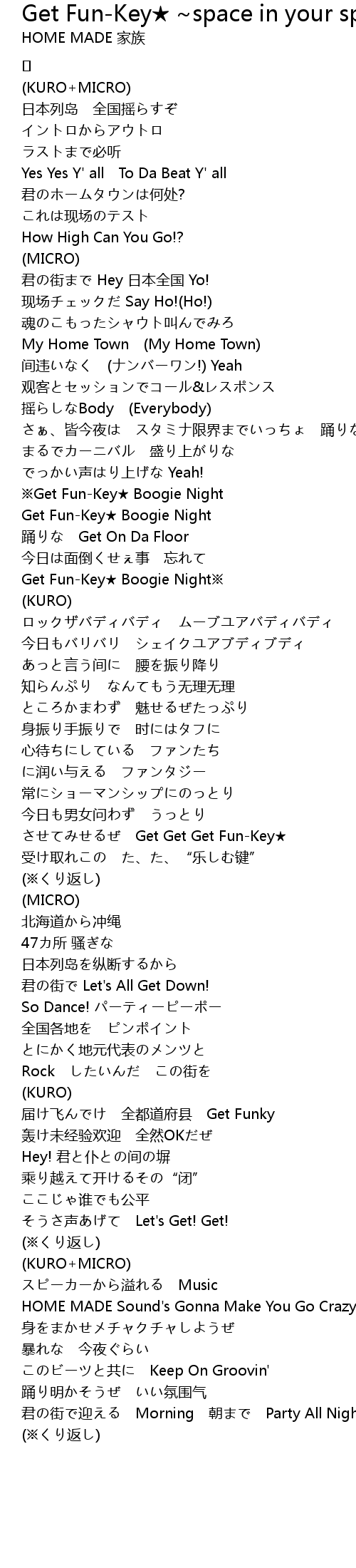 | Song | Get Fun-Key★ ~space in your space~ |