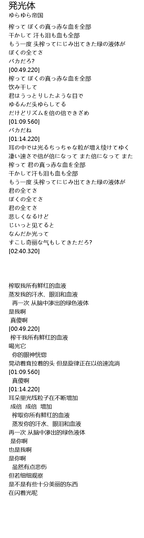 | [02:13.670] | もう一度 头榨ってにじみ出てきた绿の液体が |