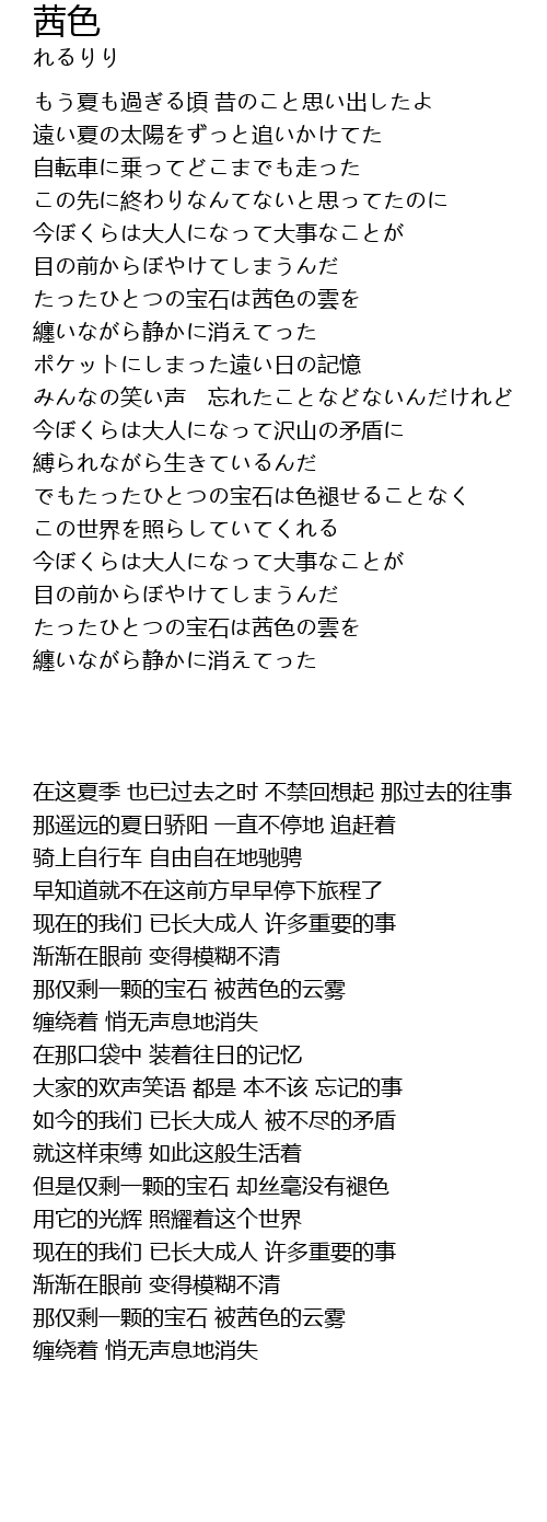 | [04:14.75] | たったひとつの宝石は茜色の雲を |
