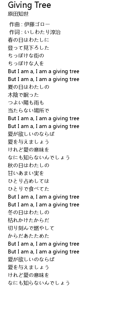 | [02:51.36] | But I am a, I am a giving tree |