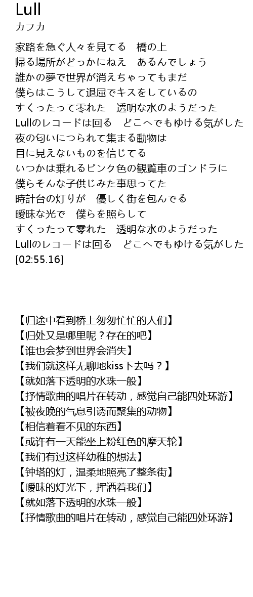 | [02:42.72] | Lullのレコードは回る どこへでもゆける気がした |