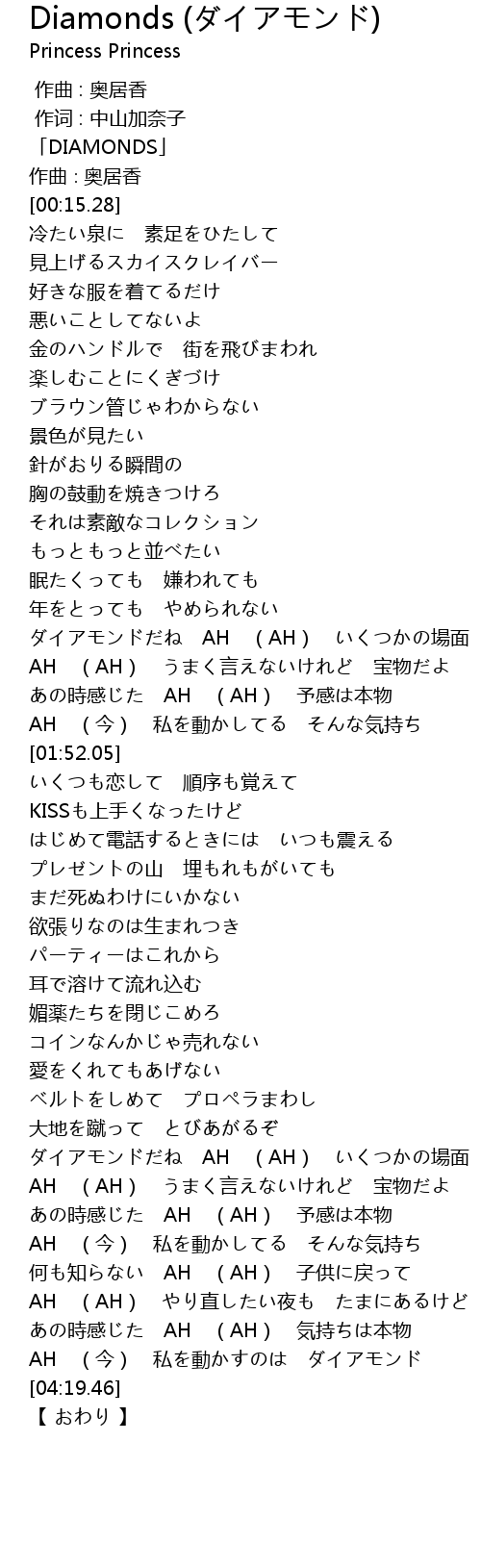 | [01:17.10] | ダイアモンドだね AH (AH) いくつかの場面 |