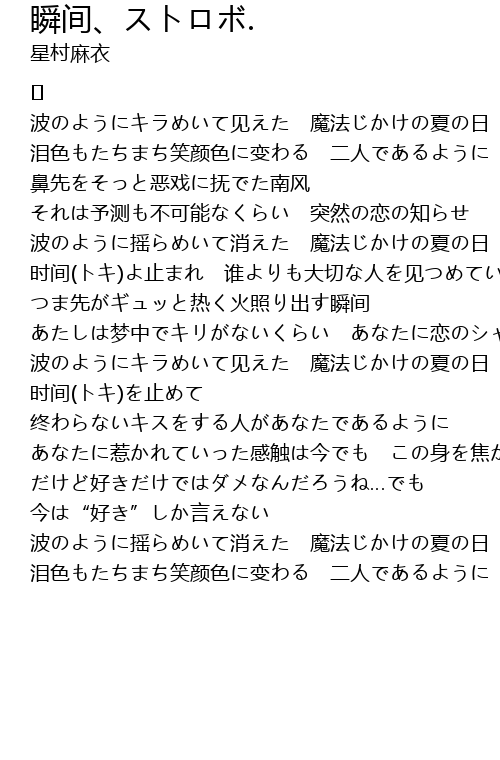 | 时间(トキ)よ止まれ 谁よりも大切な人を见つめていたいから | |