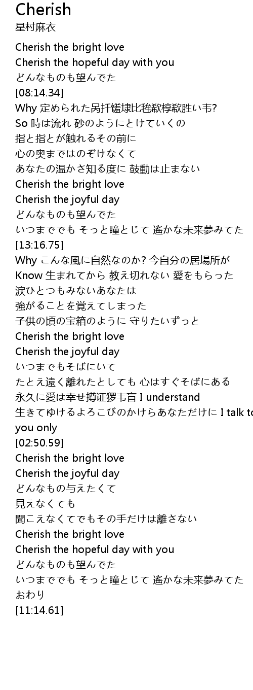 | [00:52.42] | 子供の頃の宝箱のように 守りたいずっと |