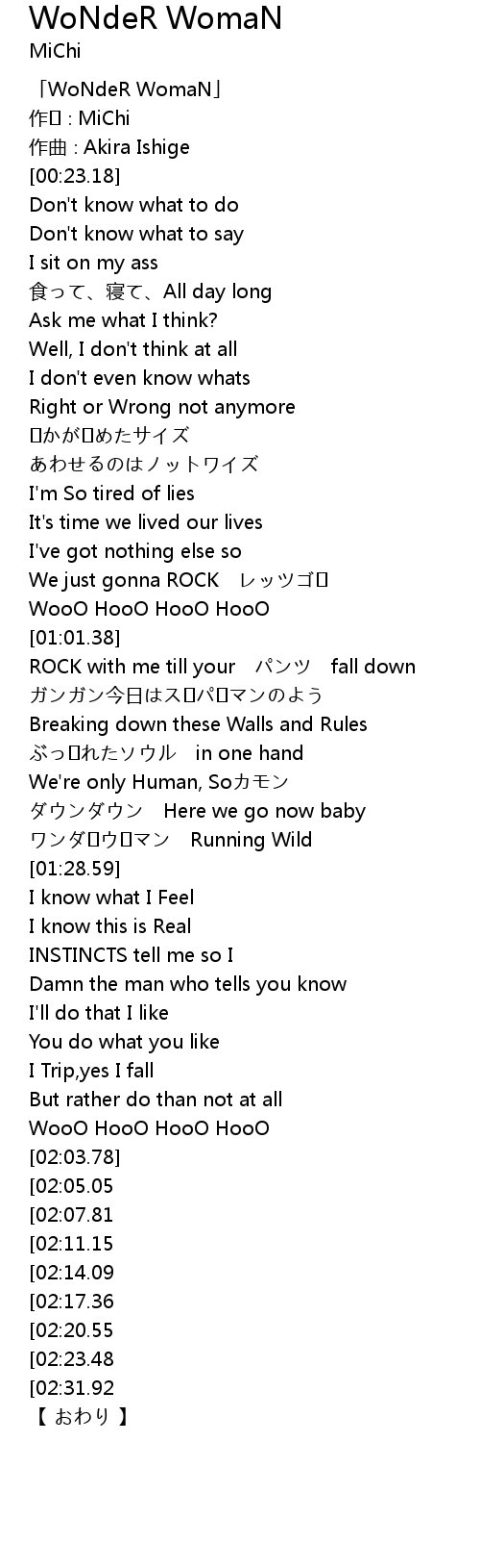 | [03:19.61][02:23.48] | ワンダ�ウ�マン Running Wild |
