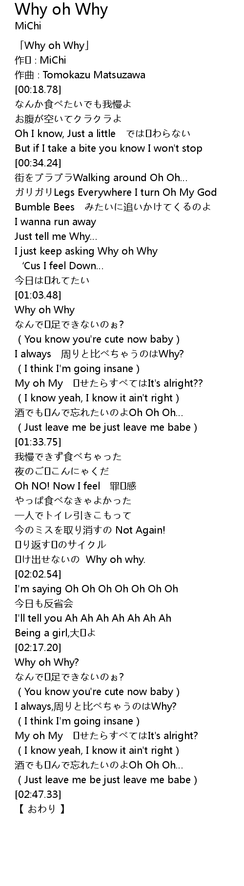 | [00:01.78] | 「Why oh Why」 |