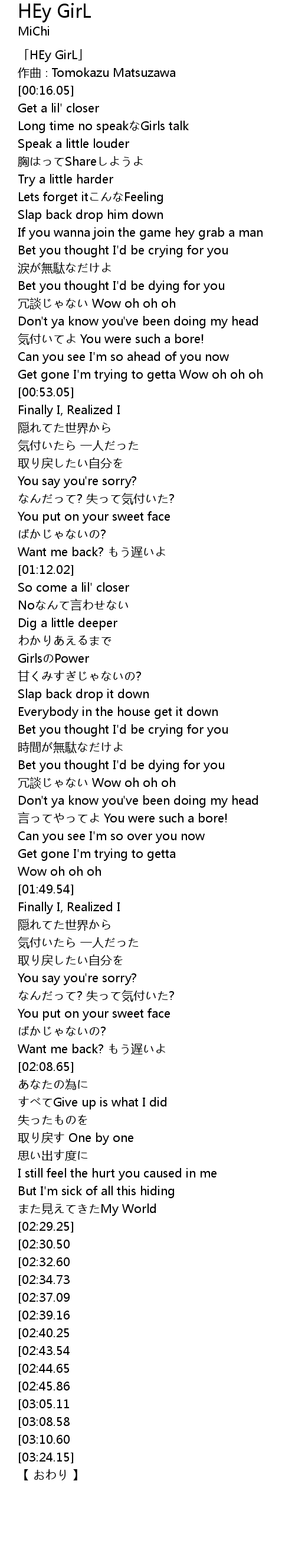 | [03:03.12][02:45.86] | Want me back? もう遅いよ |