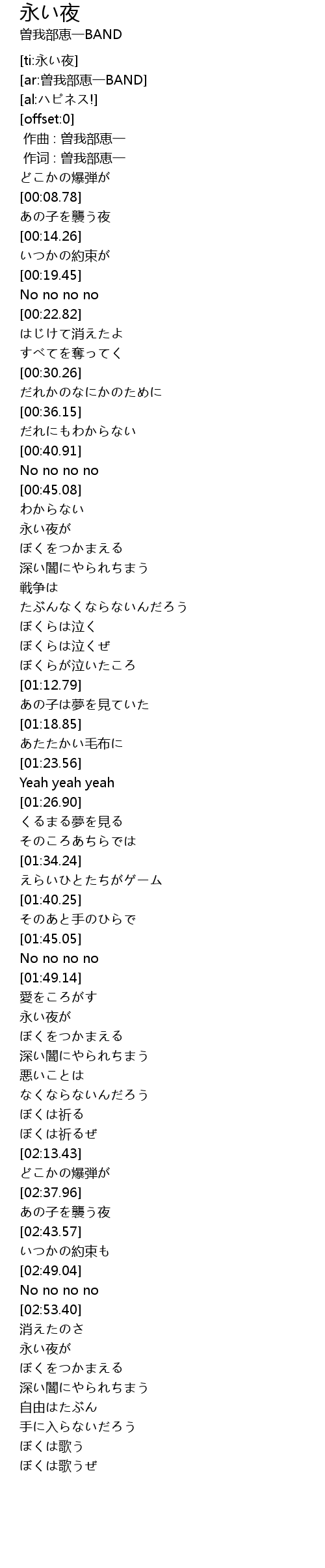 | [00:01.00] | 作词 : 曽我部恵一 |