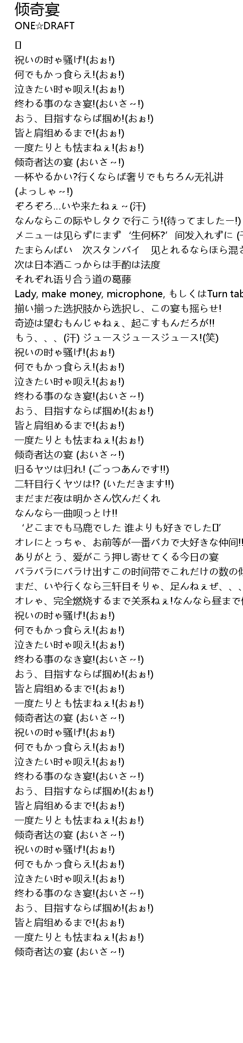 | 一杯やるかい?行くならば奢りでもちろん无礼讲 (よっしゃ~!) | |