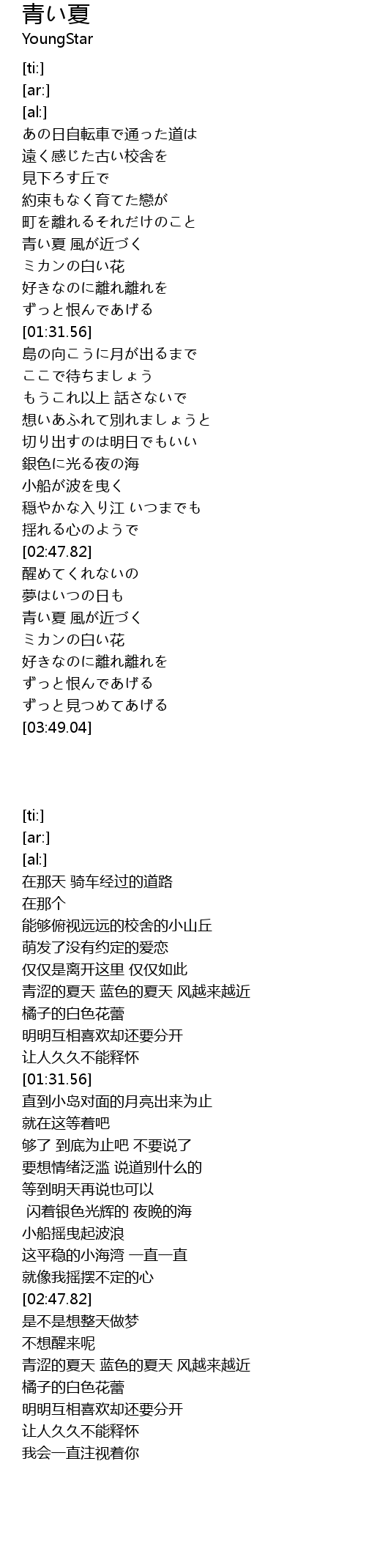 | [03:17.24] | 青い夏 風が近づく |