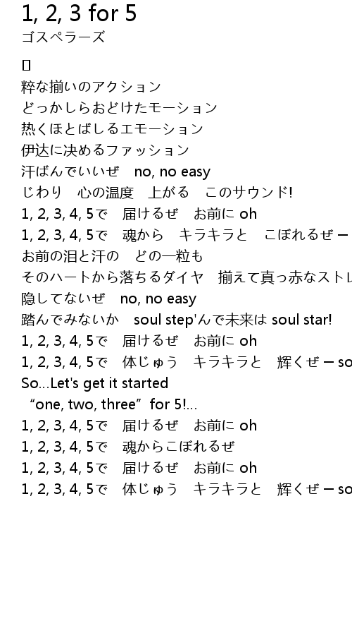| 1, 2, 3, 4, 5で 魂からこぼれるぜ | |