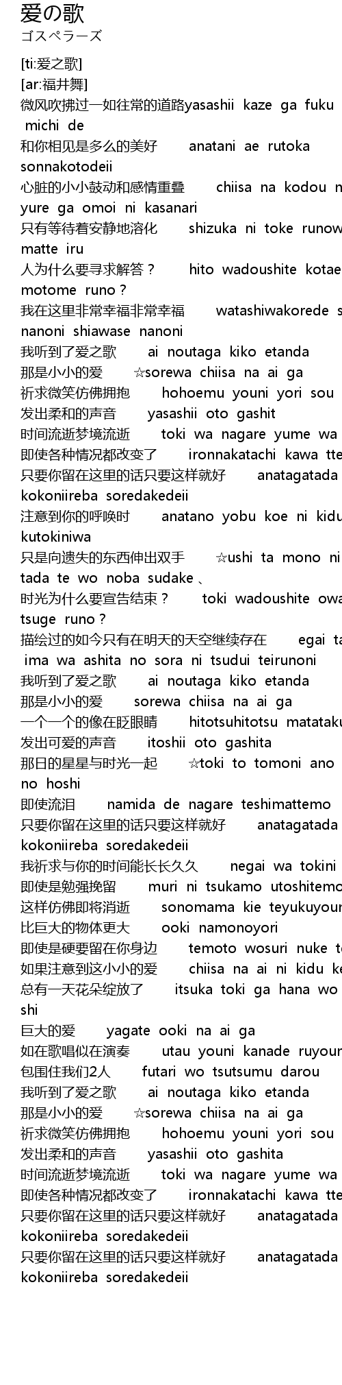 | [02:14.207] | 我听到了爱之歌 ai noutaga kiko etanda |
