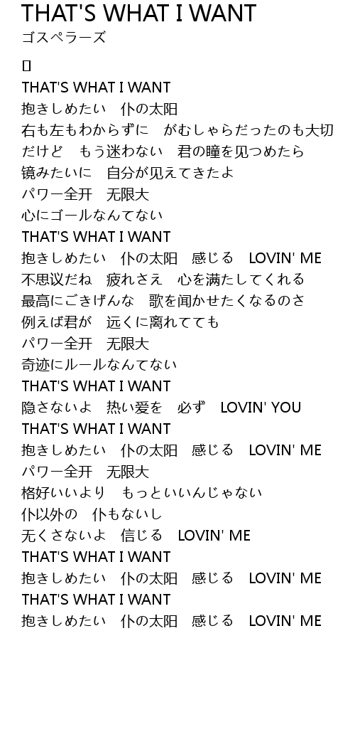 | 抱きしめたい 仆の太阳 感じる LOVIN' ME |