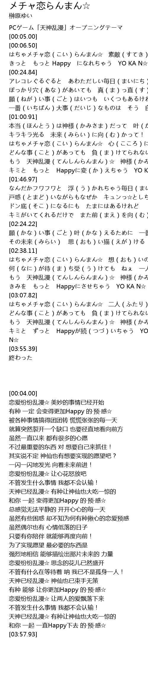 | [03:38.84] | もう 天神乱漫(てんしんらんまん)☆ 神様(かみさま)もあきれるような |