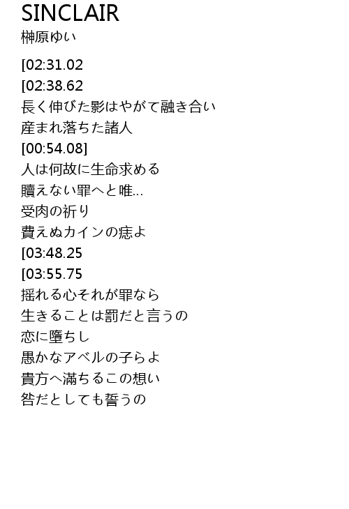 | [00:30.99][02:38.62][03:40.53] | and yet 服ろわぬ愛 この胸に燃える |
