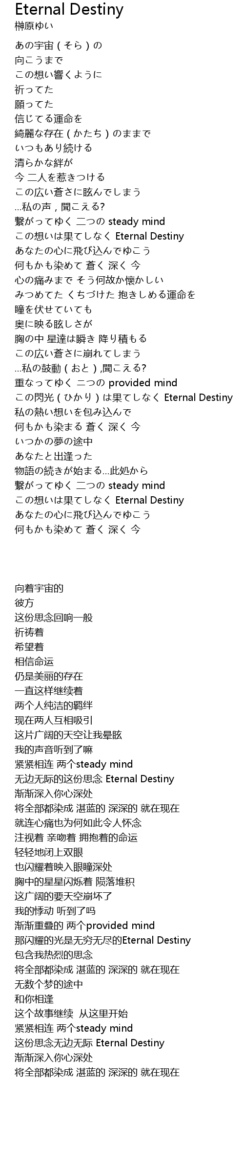 | [01:11.69] | この想いは果てしなく Eternal Destiny |
