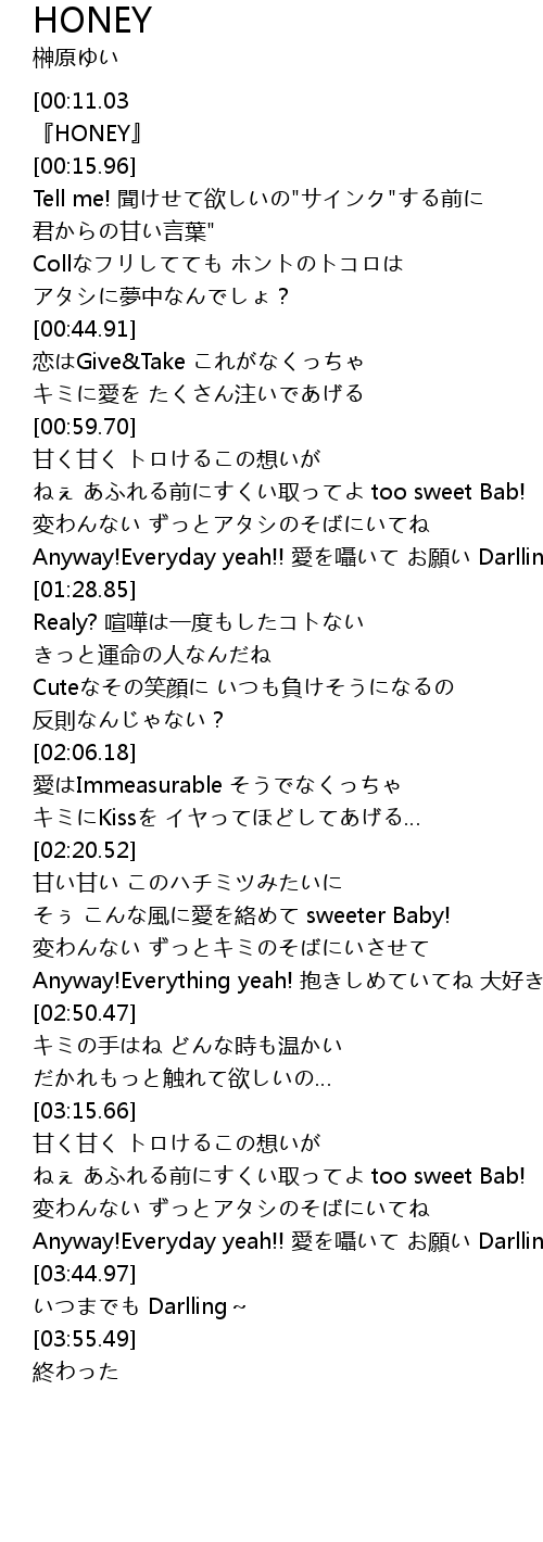 | [02:21.94] | 甘い甘い このハチミツみたいに |